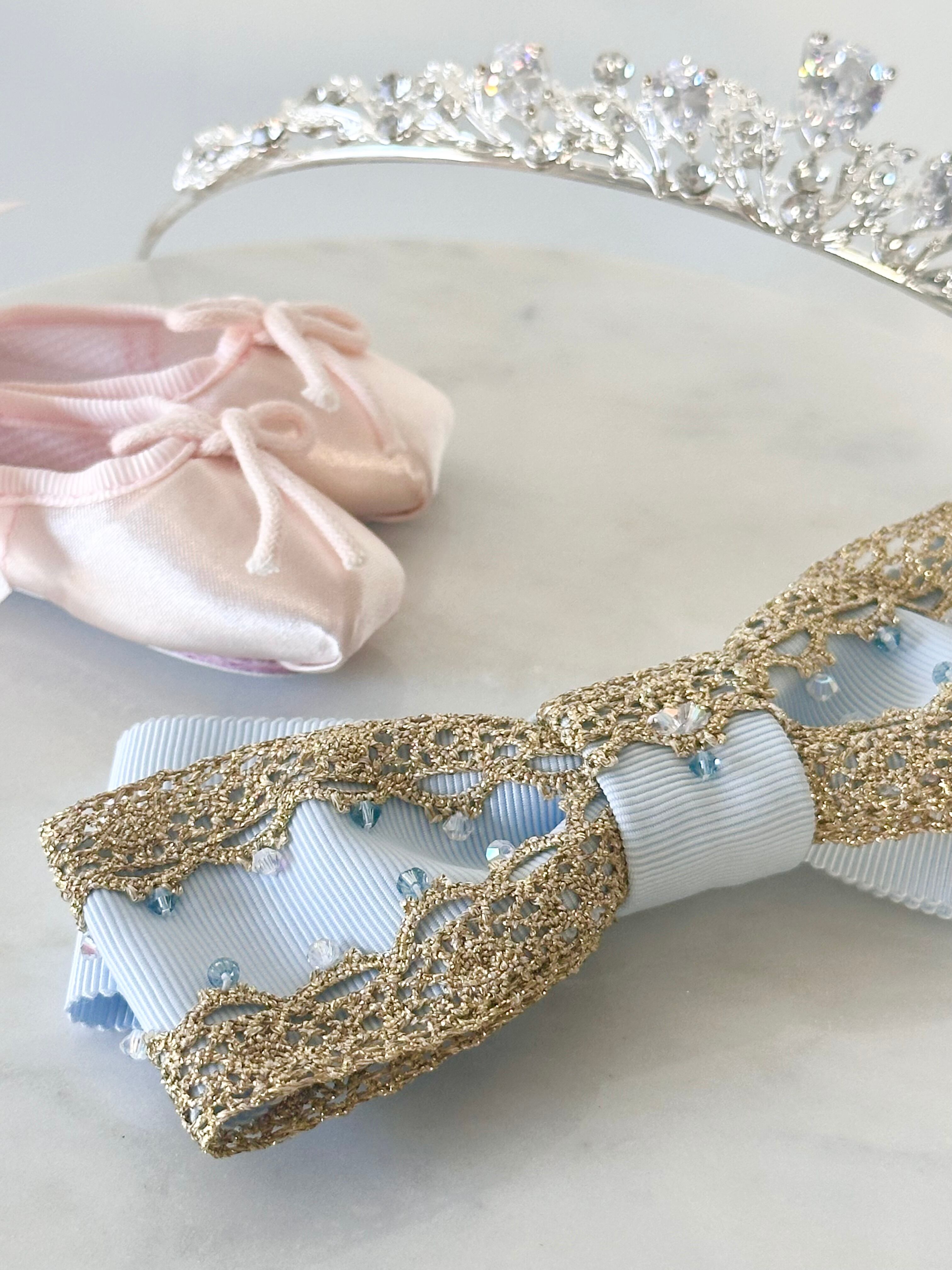 【SUNNY RIBBON/サニーリボン】⦅カスタムメイド⦆フロリナ 宝石 シルビア ライトブルー リボン アクセサリー バレッタ トゥシューズ キーホルダー バッグチャーム